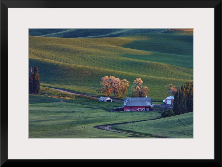 <p>Rolling hills and barns in the Palouse region of Washington State</p>