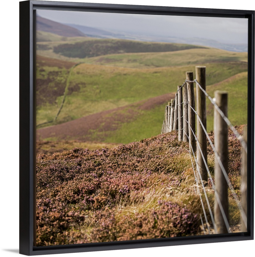 <p>Square photograph of a fence running though rolling hills in an Edinburgh countryside, Scotland, UK</p>