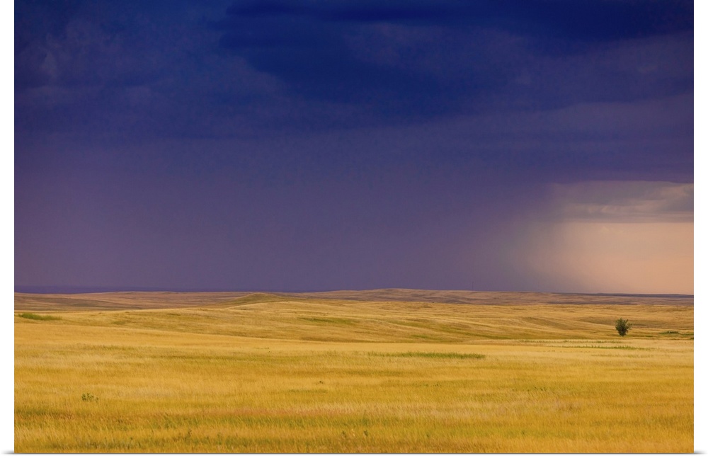 <p>Rolling plains against a dark stormy sky in the Badlands, South Dakota, United States of America, North America</p>