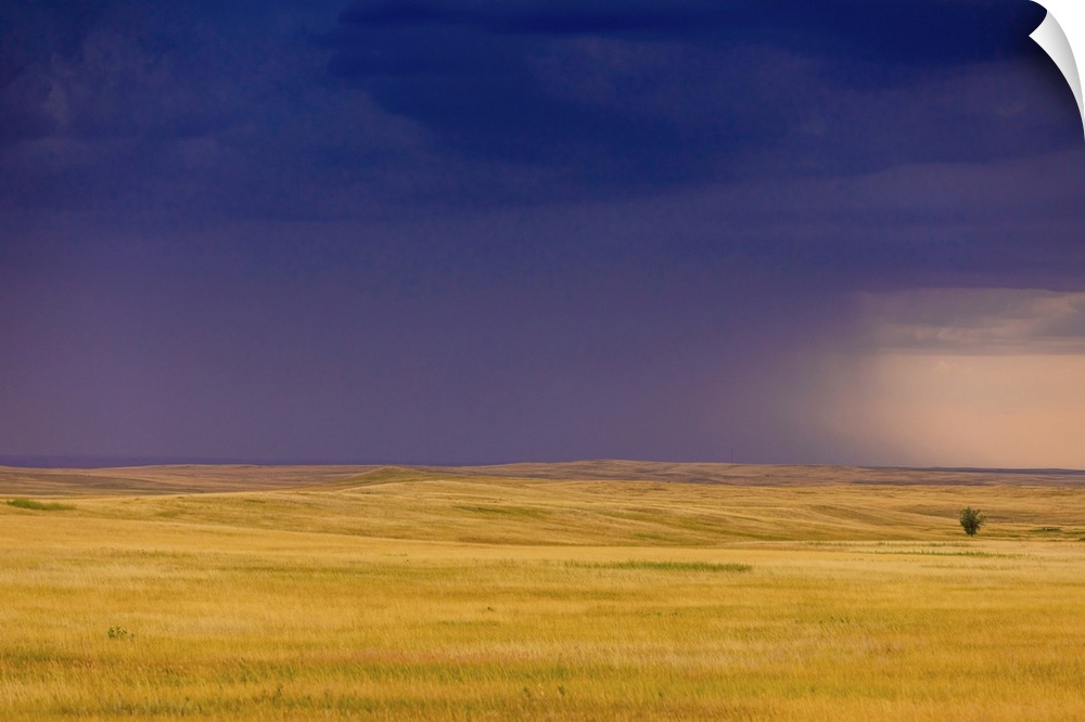 <p>Rolling plains against a dark stormy sky in the Badlands, South Dakota, United States of America, North America</p>