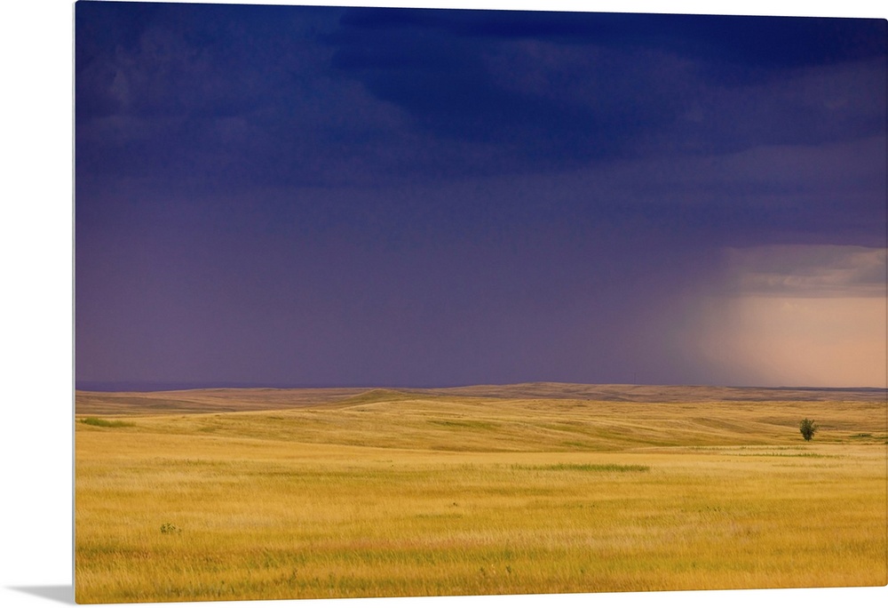 <p>Rolling plains against a dark stormy sky in the Badlands, South Dakota, United States of America, North America</p>