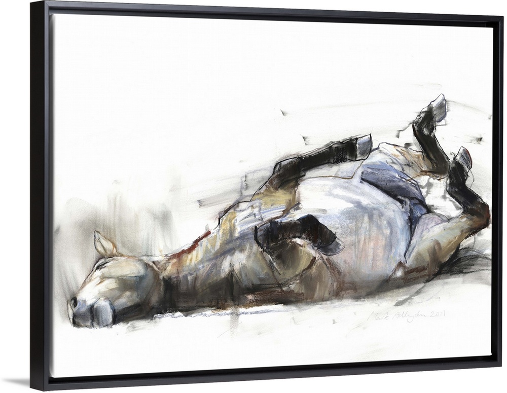 <p>Contemporary artwork of a Mongolian Przewalski horse rolling on its back against a white background.</p>