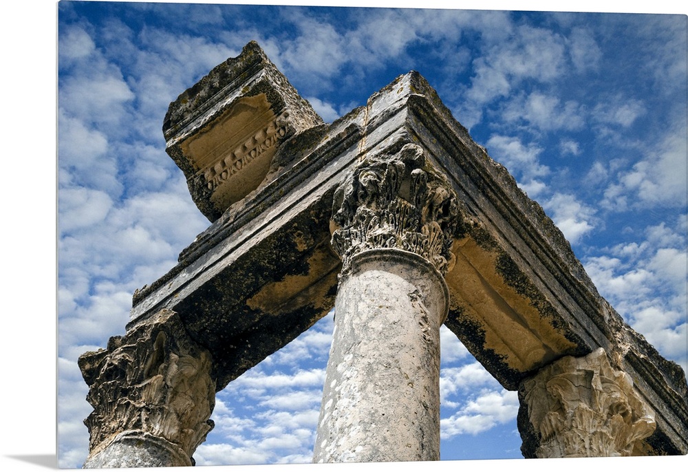 <p>Roman Ruins Temple of Juno Caelestis, 3rd Century B.C., Dougga Archaeological Site, UNESCO World Heritage Site, Tunisia, North Africa</p>