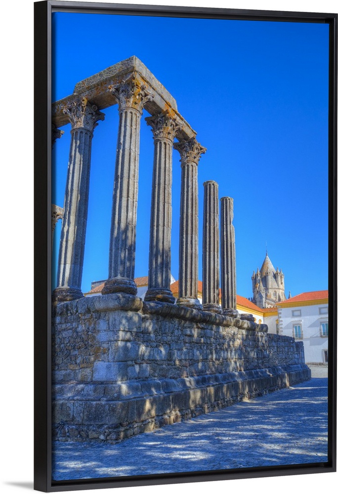 <p>Roman Temple in foreground, Evora Cathdral in the background, Evora, UNESCO World Heritage Site, Portugal, Europe</p>
