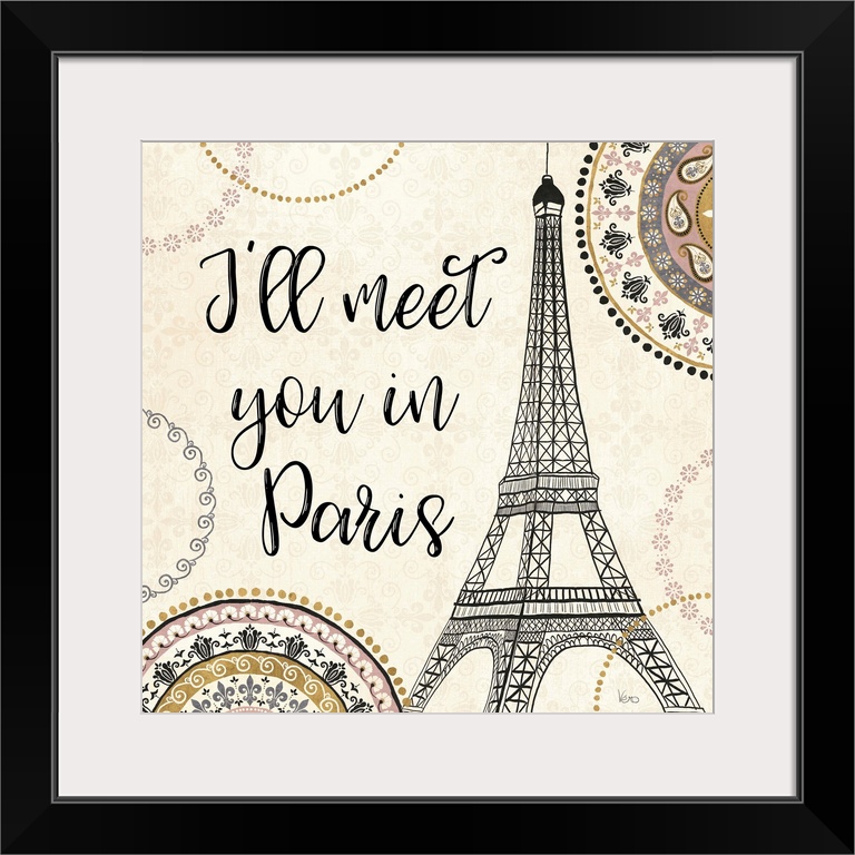 <p>"I'll Meet You in Paris" with an illustration of the Eiffel Tower.</p>