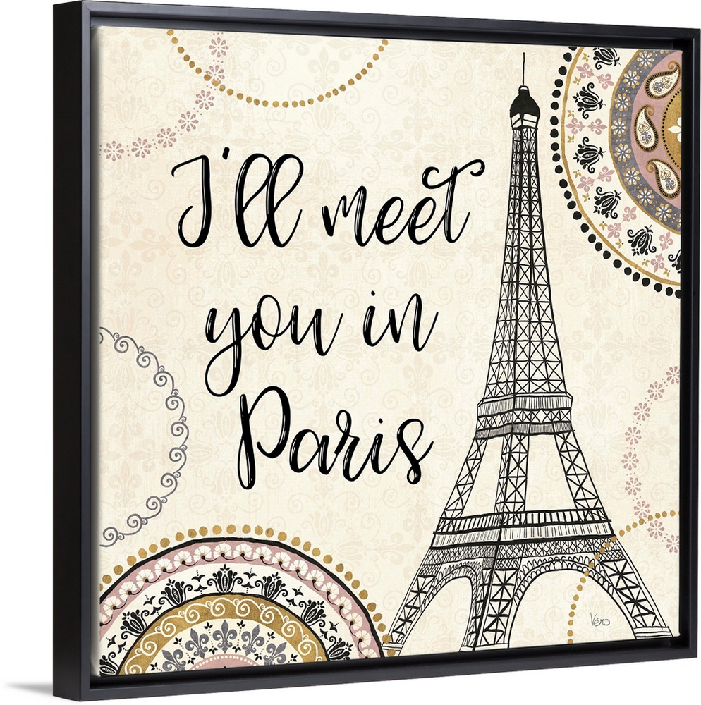 <p>"I'll Meet You in Paris" with an illustration of the Eiffel Tower.</p>