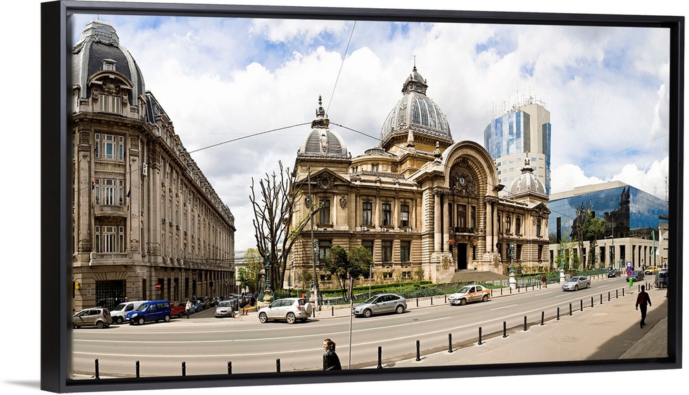 <p>Romania, Muntenia, Bucharest, Travel Destination, Buldings along Calea Victoriei: CEC House (Romanian Savings Bank) and Bucharest Financial Plazza</p>
