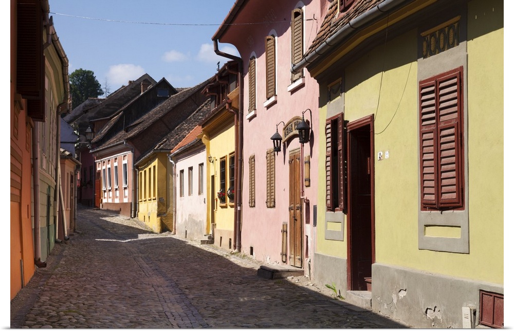 <p>Romania, Transylvania, Sighisoara. Colourful houses within the medieval fortress town of Sighisoara.</p>
