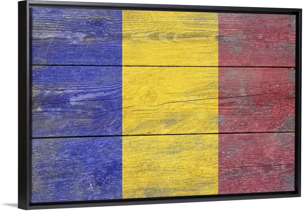 <p>The flag of Romania with a weathered wooden board effect.</p>