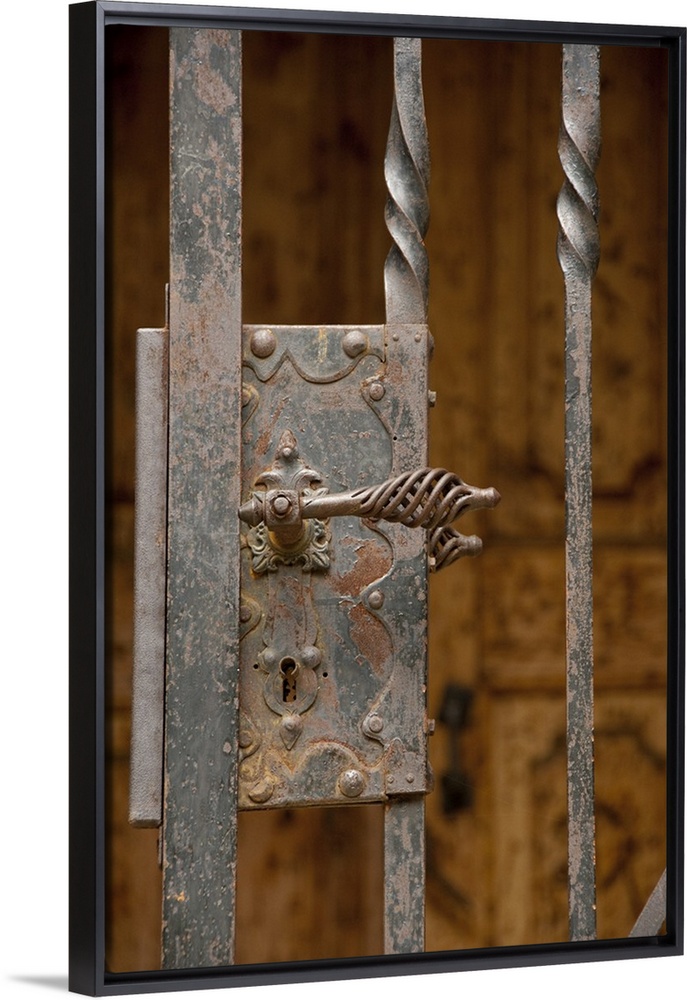 <p>Romania, Transylvania, Sighisoara. Fortified Evangelical church of Biertan, built at the end of the 15th century, detail of iron door latch.</p>