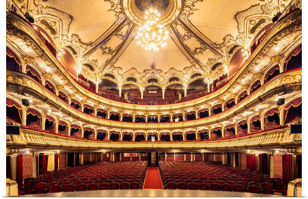 <p>Romania, Transylvania, Cluj-Napoca. Built between 1904 and 1906 by Austrian architects, Ferdinand Fellner and Hermann Helmer, the Lucian Blaga National Theatre is one of Romania's most prestigious theatrical institutions.</p>