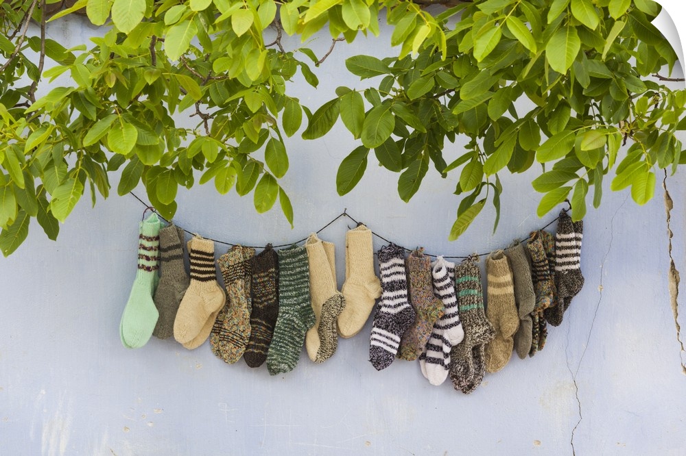 <p>Romania, Transylvania, Viscri, traditional Romanian village, supported by Prince Charles of England, hand knit souvenir socks.</p>