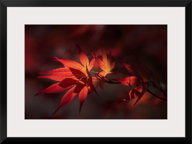 <p>Red maple leaves close up on black background</p>