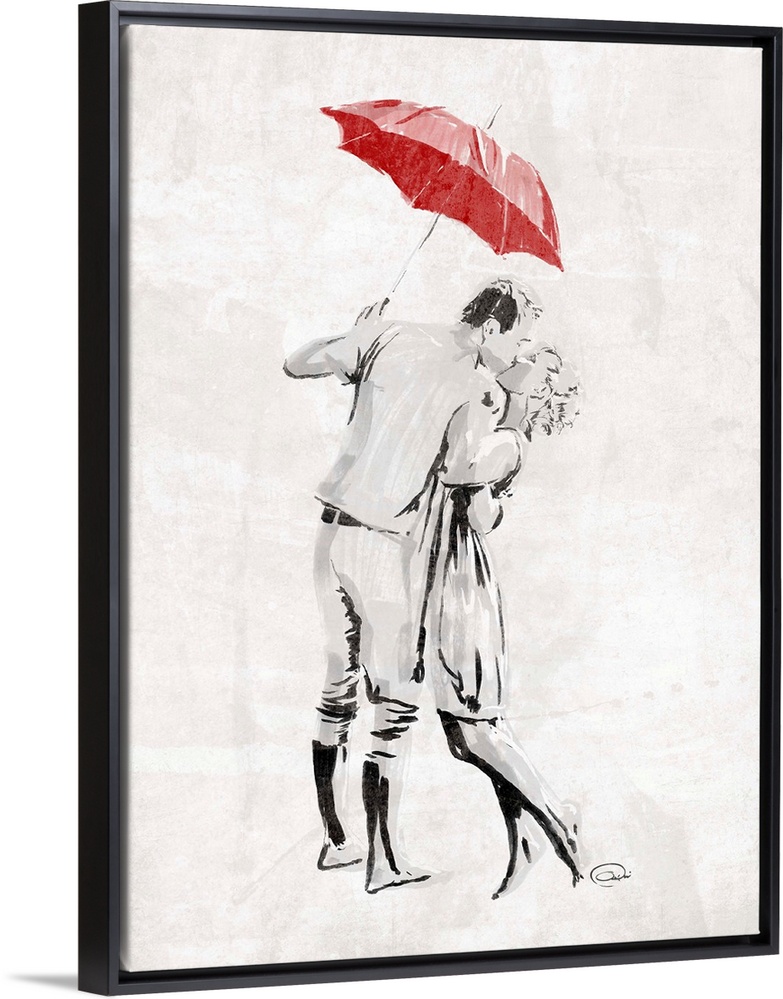 Umbrellas Art Onrei Art Decorative Art Graphic Art Love People Figurative Red Wall Art