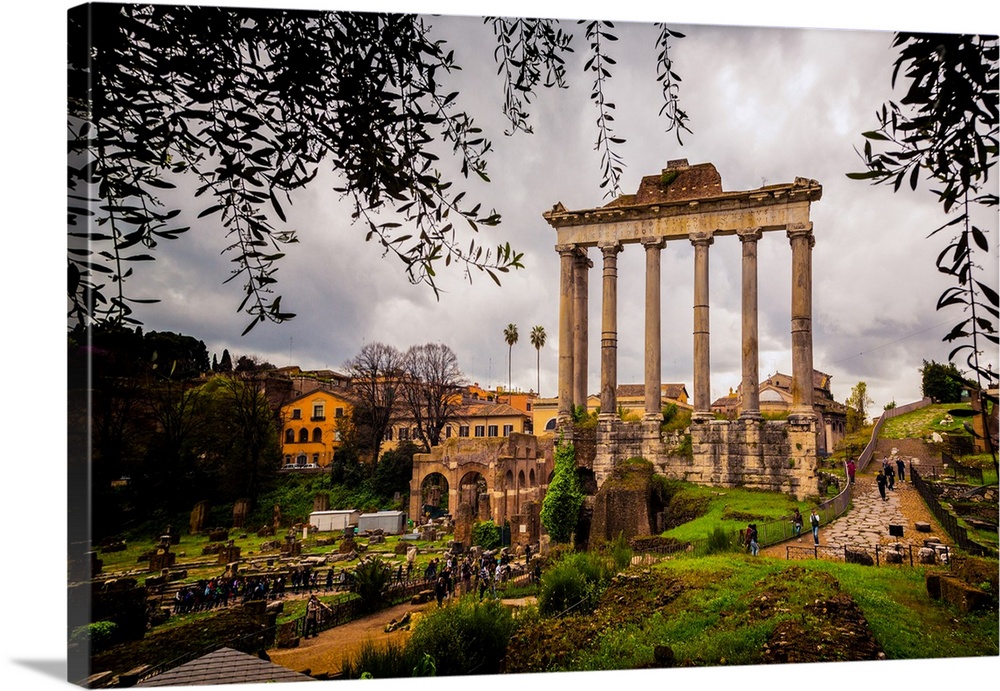 <p>Rome, Italy. The roman forum. The temple of saturn. Tempio di saturno. The historic centre of rome is a UNESCO world heritage site.</p>