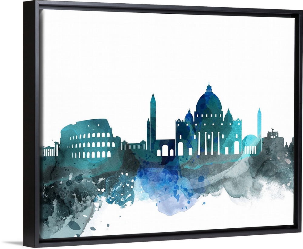 <p>The Rome city skyline in colorful watercolor splashes.</p>
