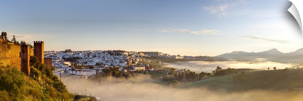 <p>Goldern morning light illuminates defensive walls in old town Ronda, Ronda, Malaga Province, Andalusia, Spain</p>