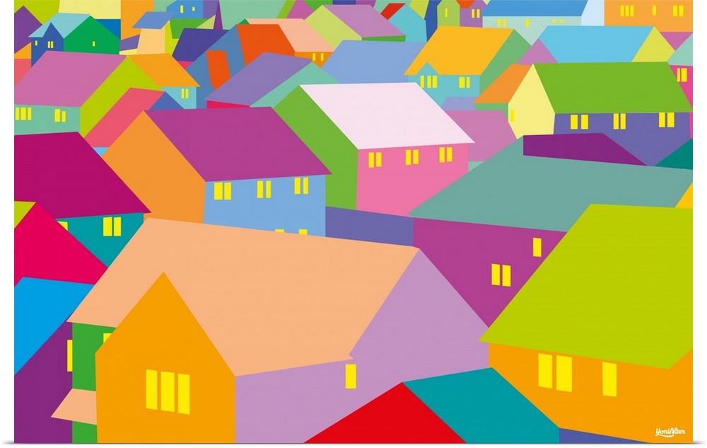 Architecture Houses Art Cityscapes Contemporary Art Graphic Art Multicolor Wall Art