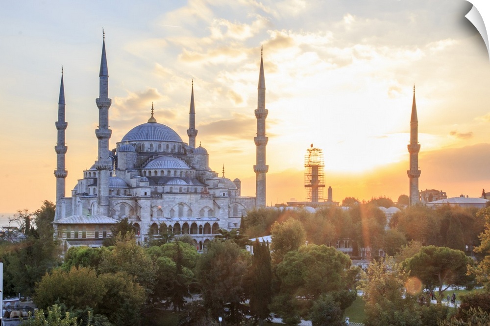 <p>Turkey, Istanbul. Sultan Ahmet Mosque, Sutan Ahmet Camii, Blue Mosque. Built 1609-1615 AD. Rooftop view.</p>