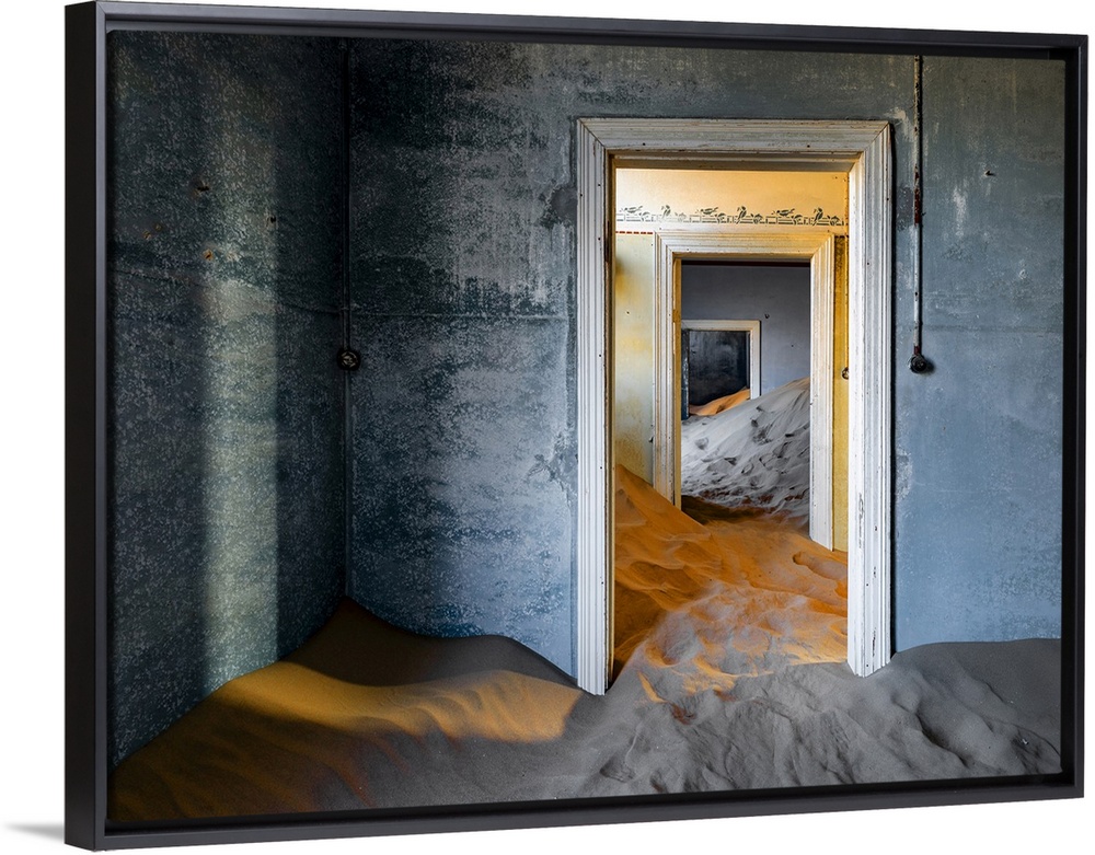 <p>Colourful painted rooms filling with sand in abandoned diamond mining town, Kolmanskop, Luderitz, Namib Desert, Namibia.</p>