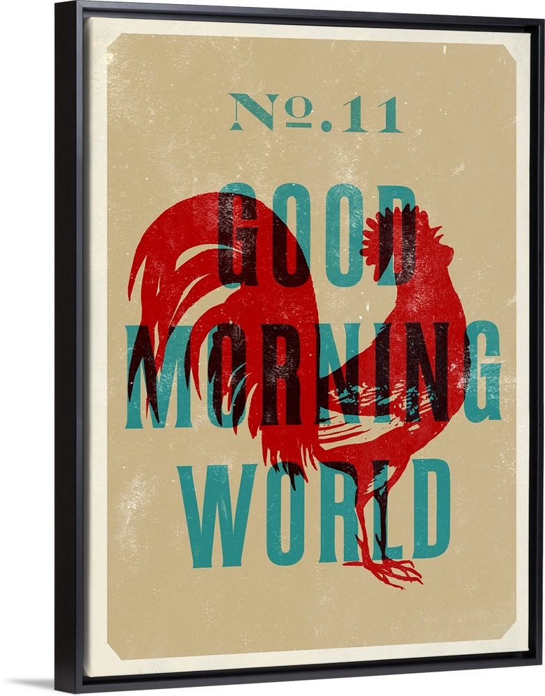 <p>Retro mid-century stylized poster art of a red rooster silhouette against a pale green background.</p>