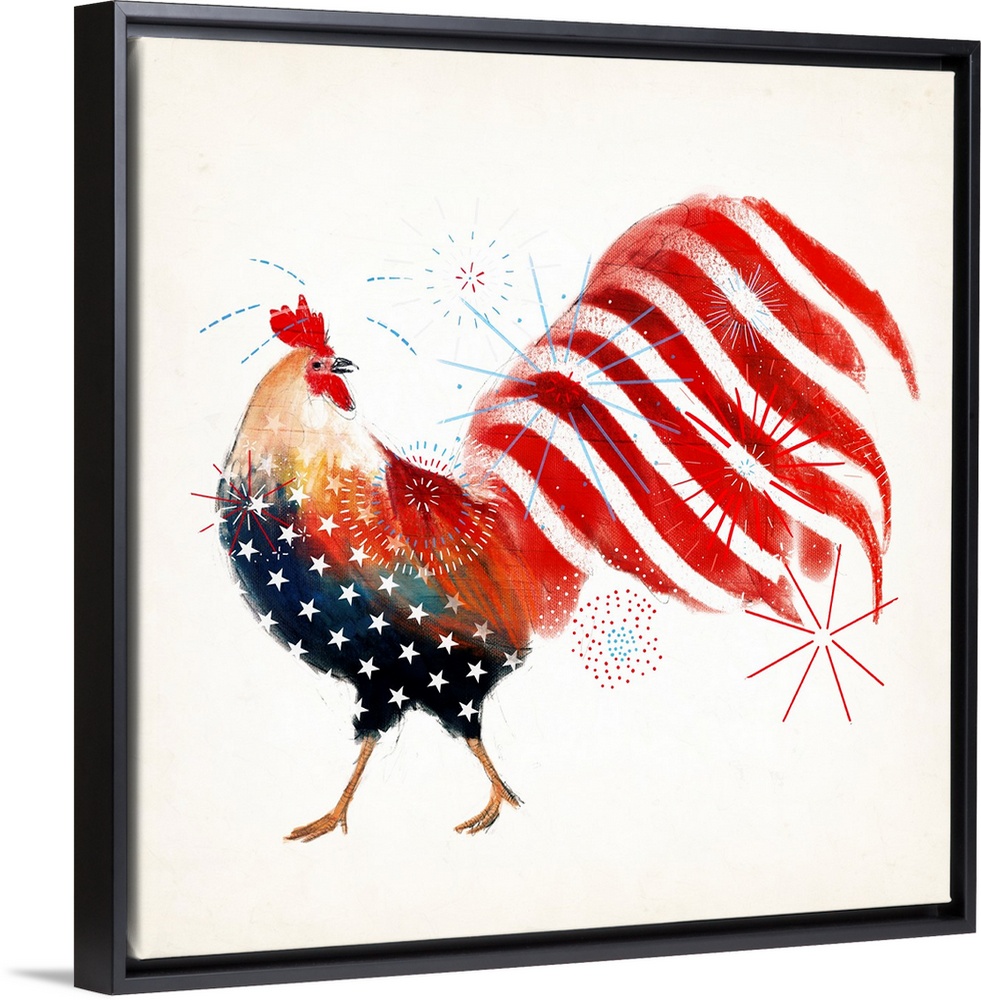 Americana Art Farmhouse Decorative Art Fireworks Holidays 4th of July Painting Patriotic Art Victoria Borges Wildlife Bird Chicken
