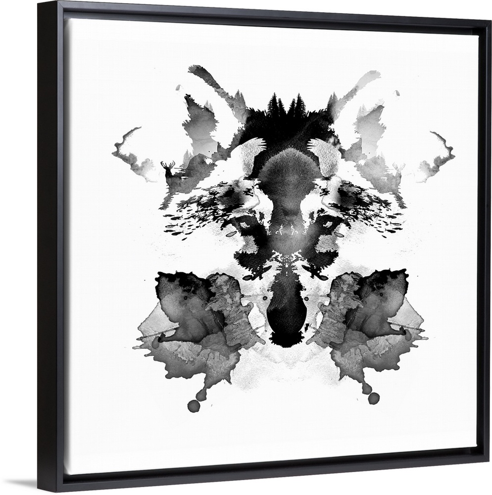 <p>Contemporary artwork of a wolf face in a Rorschach ink blot.</p>