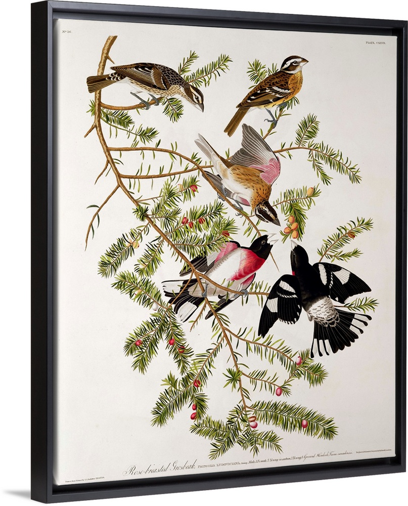 <p>Rose-breasted Grosbeak, from 'Birds of America', engraved by Robert Havell (1793-1878) (coloured engraving); by Audubon, John James (1758-1851) (after)</p>