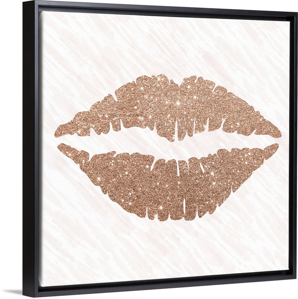 <p>Sparkly pair of rose gold lips on a pale pink and white designed background.</p>