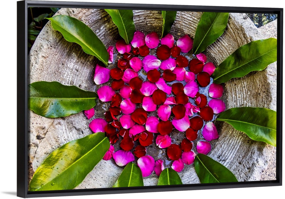 <p>Rose petals and Green Leaves Zen like arrangement.</p>