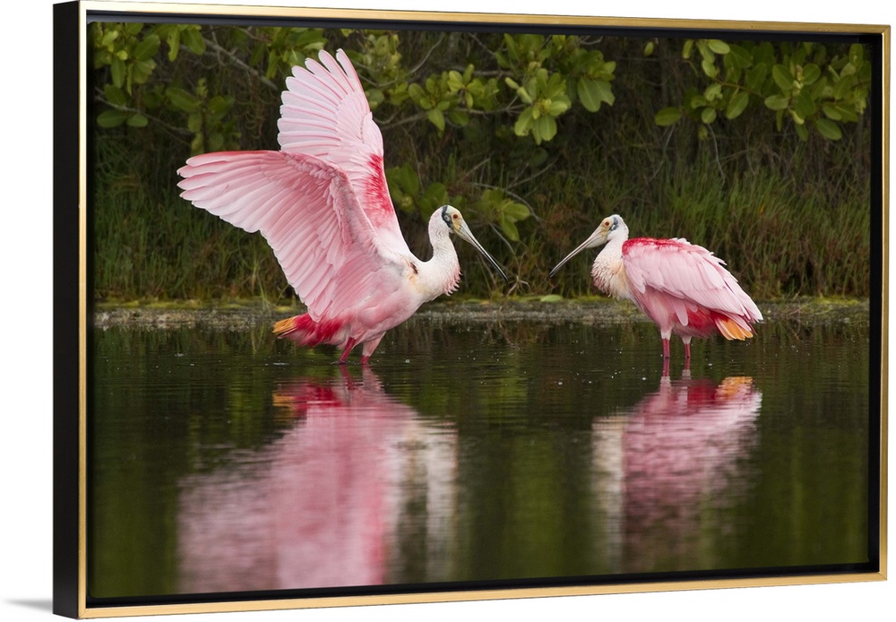<p>roseate spoonbill (Ajaia ajaja), Pair, courtship, wing stretch, Merritt Island NWR, FL</p>