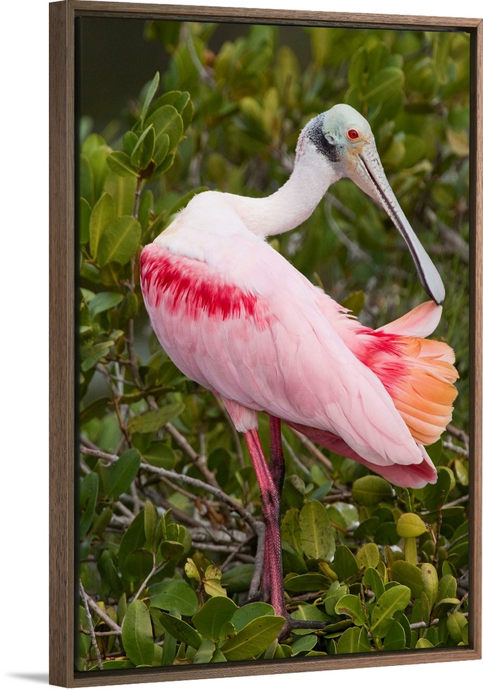 <p>roseate spoonbill (Ajaia ajaja), Preening, Merritt Island NWR, FL</p>