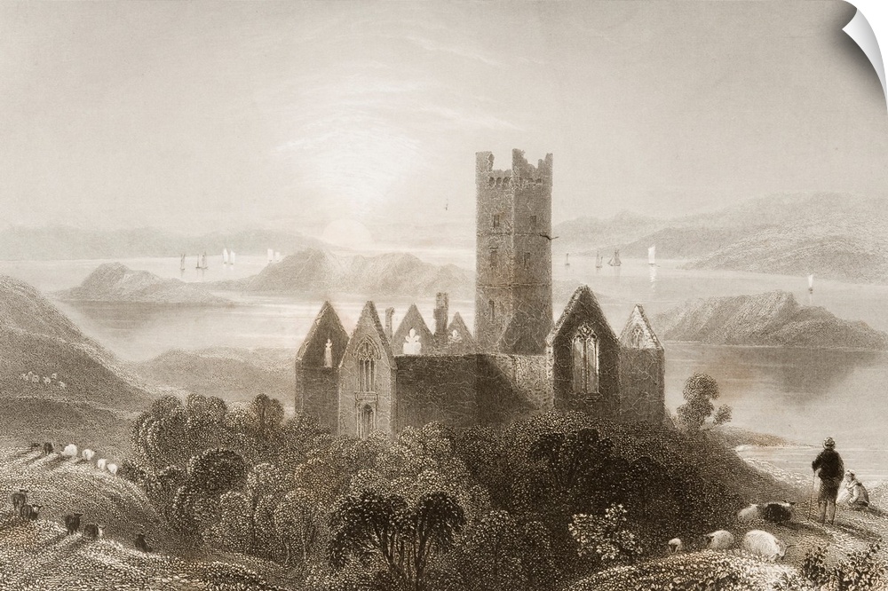 <p>Roserk Abbey, County Mayo, Ireland. Drawn By W. H. Bartlett, Engraved By J. C. Armytage. From "The Scenery And Antiquities Of Ireland" By N. P. Willis And J. Stirling Coyne. Illustrated From Drawings By W. H. Bartlett. Published London c1841.</p>