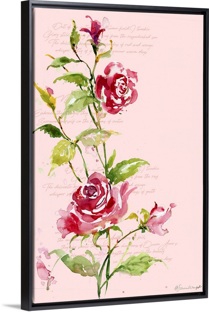 Art Decorative Art Florals Rose Painting Pink Wall Art Watercolor Susan Winget