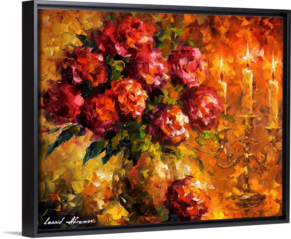 <p>Leonid Afremov was an extraordinarily prolific contemporary artist with a style all his own. His palette knife paintings depict people, cities, seascapes, gardens and animals in bold colors. Afremov’s love for brilliant colors may be cathartic, an affirmation that he had risen above the struggles and drudgery that plagued him early in his career in Russia and Israel. Afremov’s intricate and timeless paintings make spectacular canvas prints that will add a touch of sophistication and charm to any room.</p>
