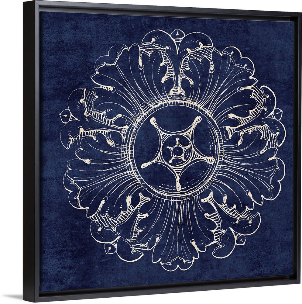 <p>Contemporary artwork of a vintage stylized rosette in dark blue.</p>