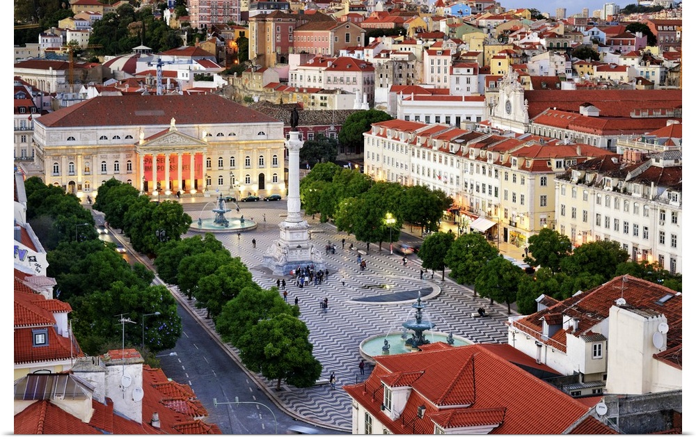 <p>Rossio square or Praca Dom Pedro IV, the heart of the historic centre at twilight. Lisbon, Portugal.</p>