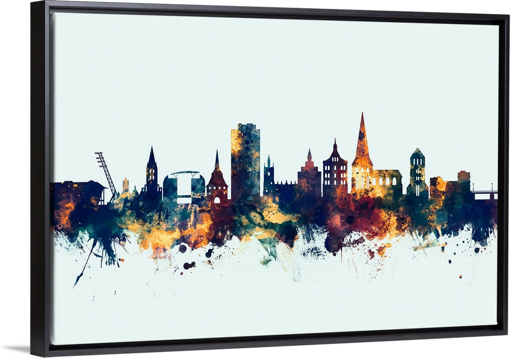 <p>Watercolor art print of the skyline of Rostock, Germany</p>