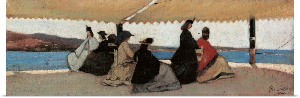 <p>The Rotunda at Palmieri, by Giovanni Fattori, 1866, 19th Century, oil on panel, cm 12 x 35 - Italy, Tuscany, Florence, Palazzo Pitti, Gallery of Modern Art. All. Morning morning light summer city Livorno Rotunda at Palmieri The Palmieris Bathing Rotunda s</p>
