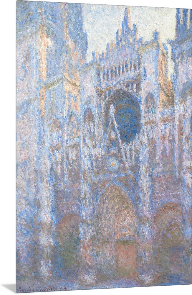 <p>Rouen Cathedral, West Facade, by Claude Monet, 1894, French impressionist painting, oil on canvas. Monet painted at least 30 works in his series of the Gothic cathedral</p>