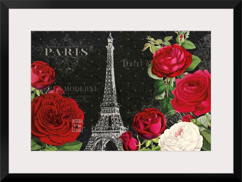 Art Decorative Art Florals Rose Graphic Art Katie Pertiet Paris Eiffel Tower