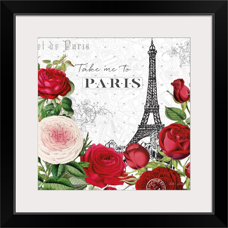 Art Decorative Art Florals Rose Graphic Art Katie Pertiet Paris Eiffel Tower