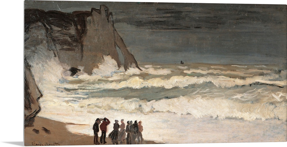 <p>Rough Sea at Etretat, by Claude Monet, 1868 - 1869 about, 19th Century, oil on canvas, cm 66 x 131 - France, Ile de France, Paris, Muse dOrsay, RF1678. All. Rough sea at Etretat water rock beach wave white grey people wind. (246665) Everett Collection\Mon</p>