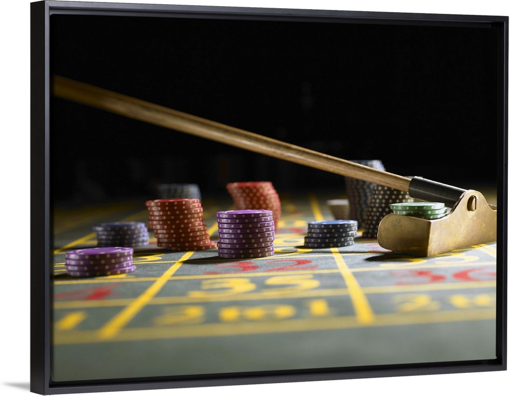 <p>Roulette rake gathering gambling chips on gaming table</p>