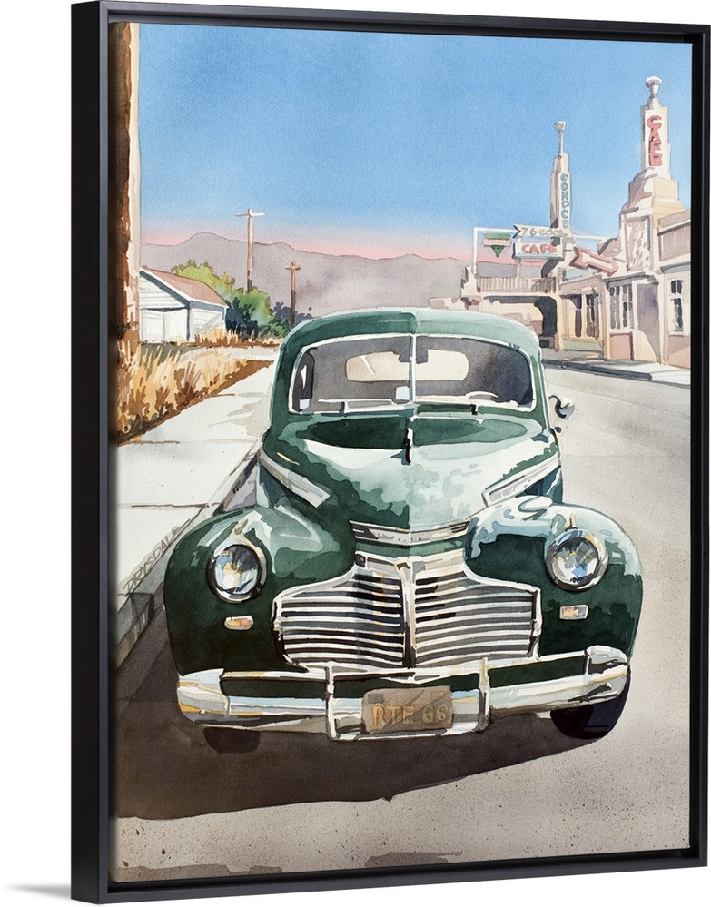 <p>Watercolor painting of a 1941 Chevy on Route 66 in Texas.</p>