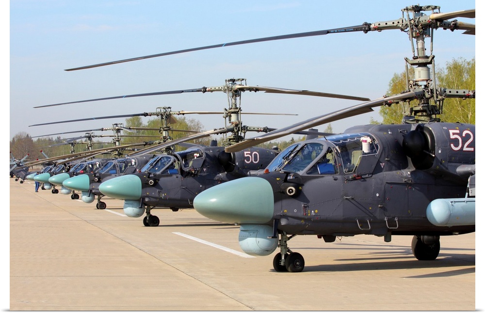 <p>Row of Ka-52 Alligator attack helicopters of the Russian Air Force.</p>