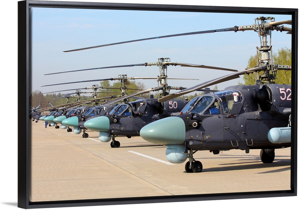 <p>Row of Ka-52 Alligator attack helicopters of the Russian Air Force.</p>