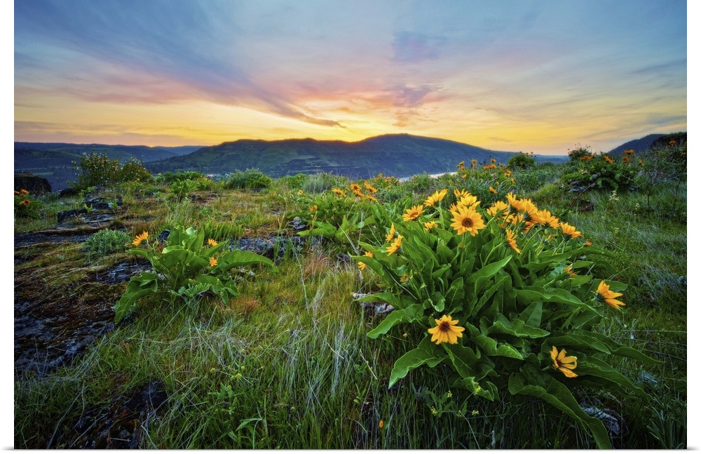 <p>Balsamroot blooms at Rowena Crest in the Columbia Gorge.</p>