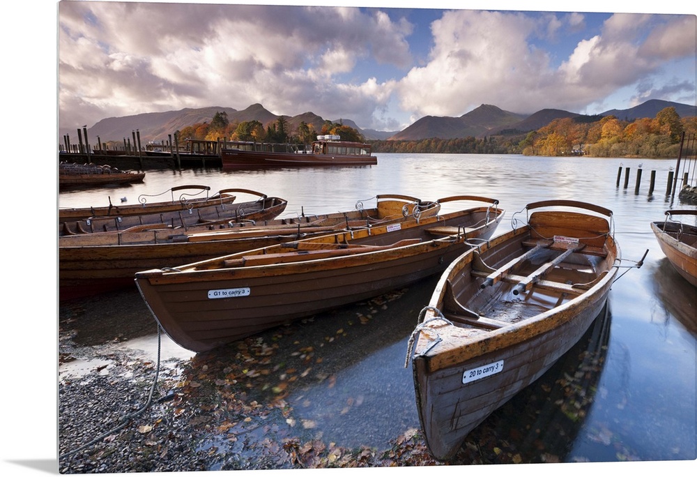 <p>Rowing Boats on Derwent Water at Keswick, Lake District, Cumbria, England. Autumn</p>