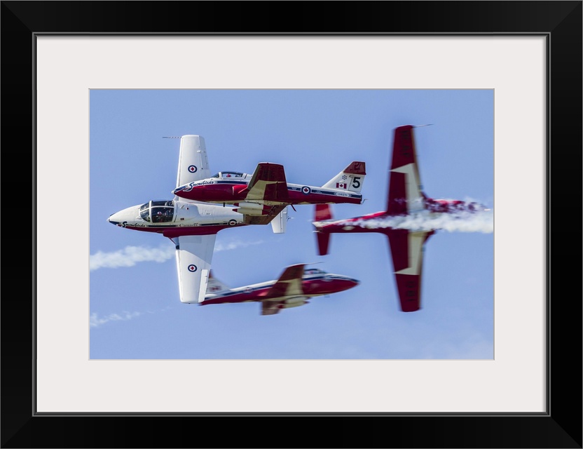 <p>Four Royal Canadian Air Force Tutor trainer aircraft of the Snowbirds display team cross at Waukegan, Illinois.</p>